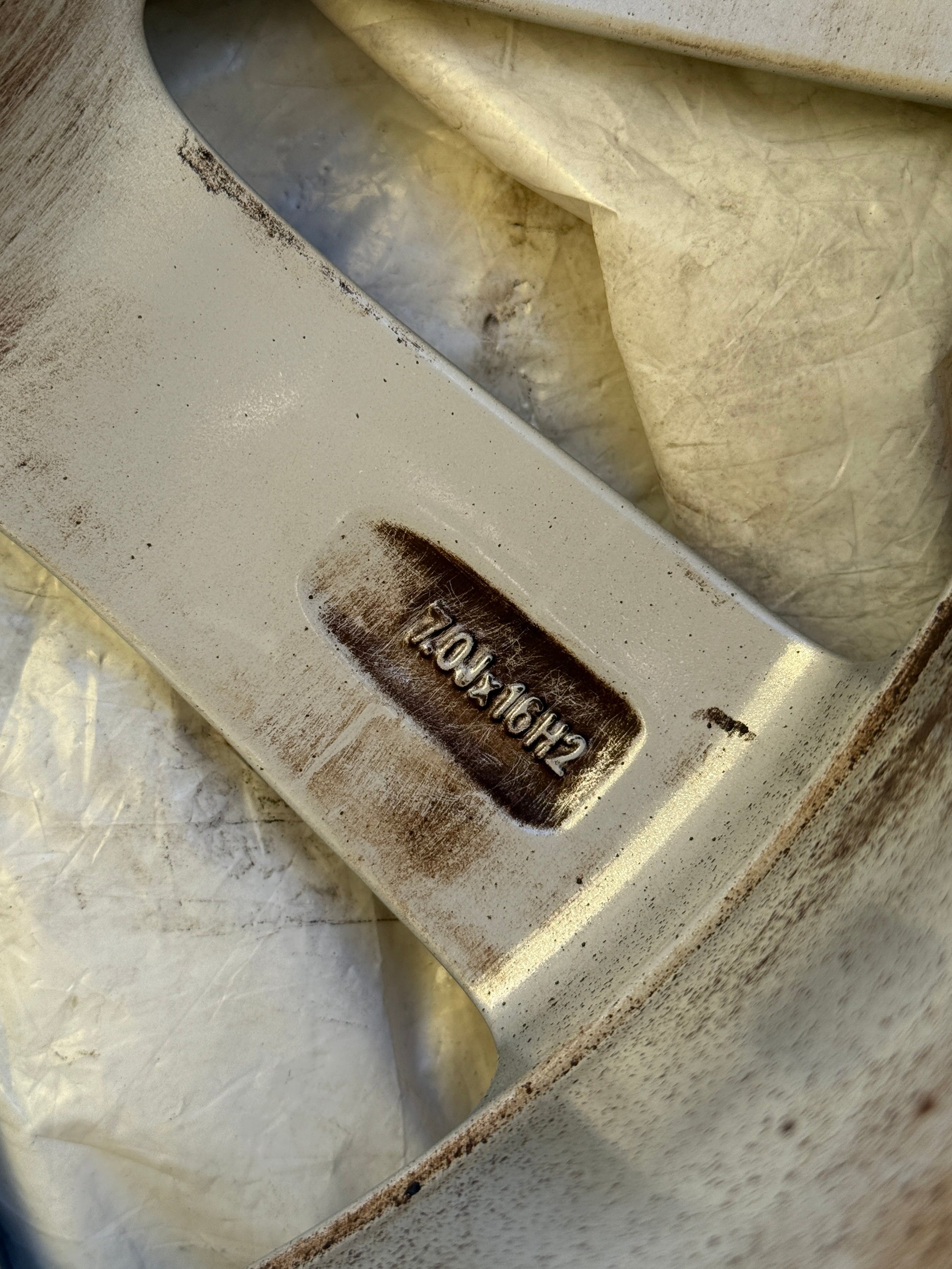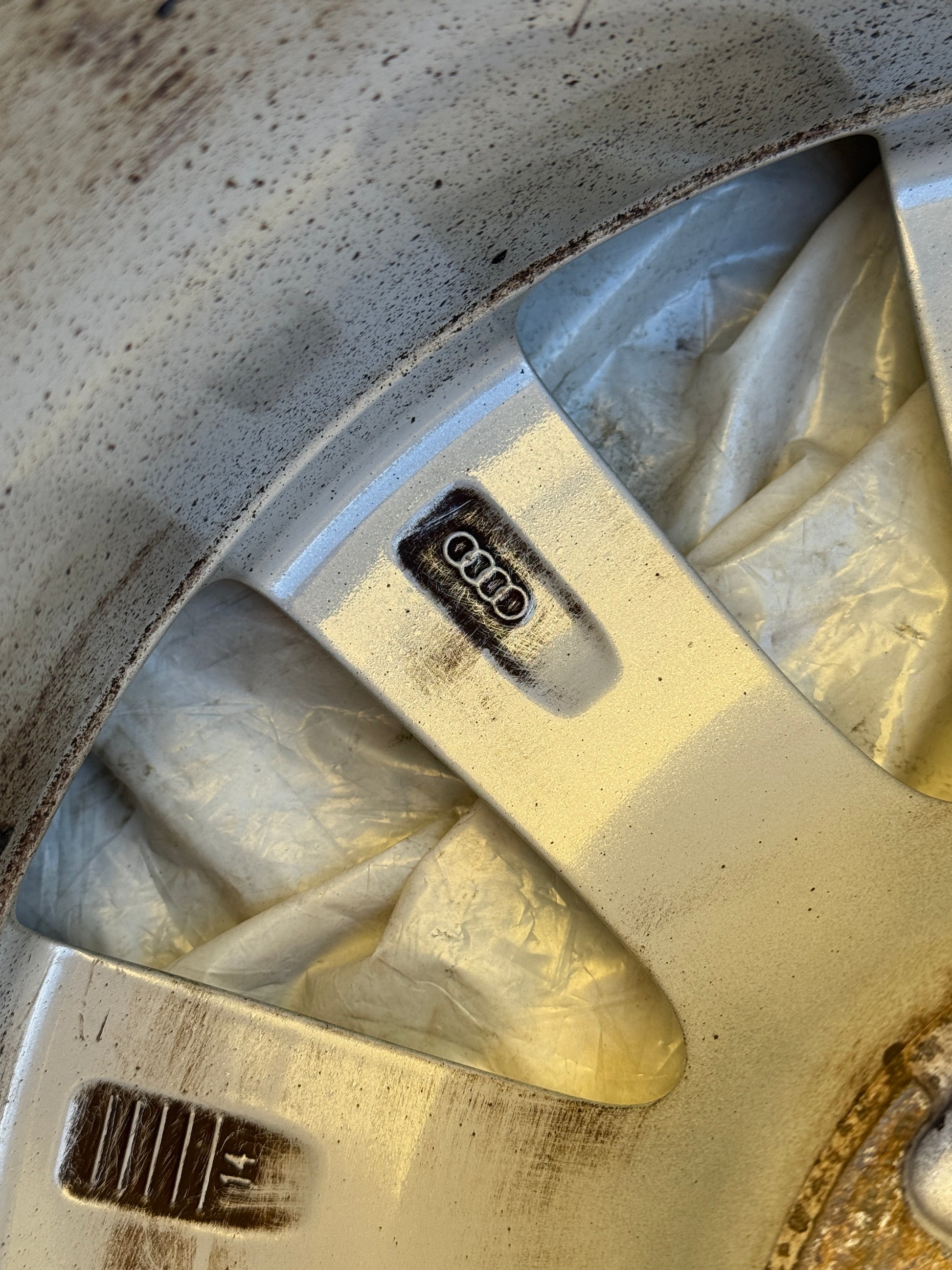 Set di cerchi originali da 16", modello originale Audi A1. I cerchi presentano segni da marciapiede come da foto, c'è una foto per ogni cerchio.